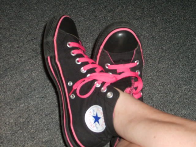 The story behind the magic sneaks is that once upon a time, C. gave me her pair of black Converse hi-tops with red laces. I'd always loved seeing them on her. This was after she had gotten me into ISA (Incest Survivors Anonymous) and I had told her about the sexual abuse from my childhood. She told me that as long as I had the magic sneaks, no one would ever hurt me again.